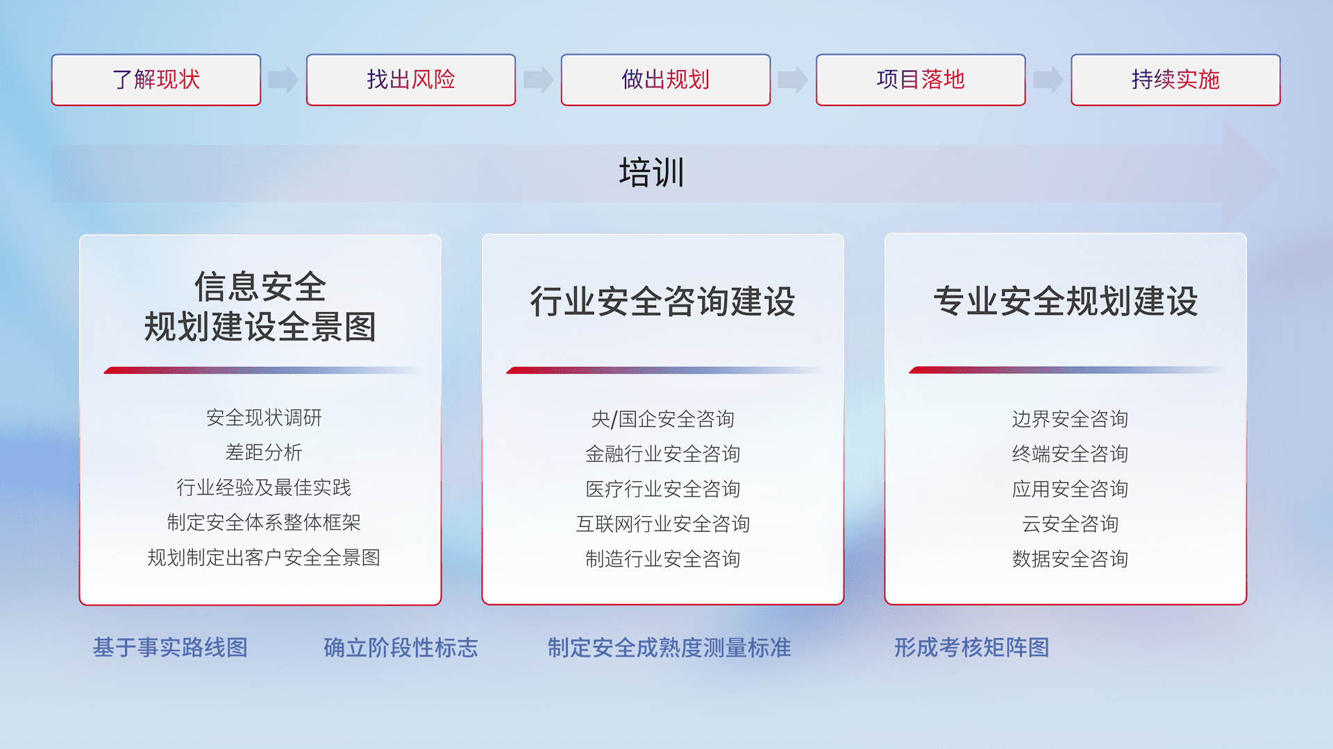 梳理客户信息安全现状调研、、、差距分析结果,,,,结合行业先进经验及最佳实践,,,制订客户的信息安全管控体系总结架构,,,最终形成一个完整的客户信息安全规划与建设的全景图。。。